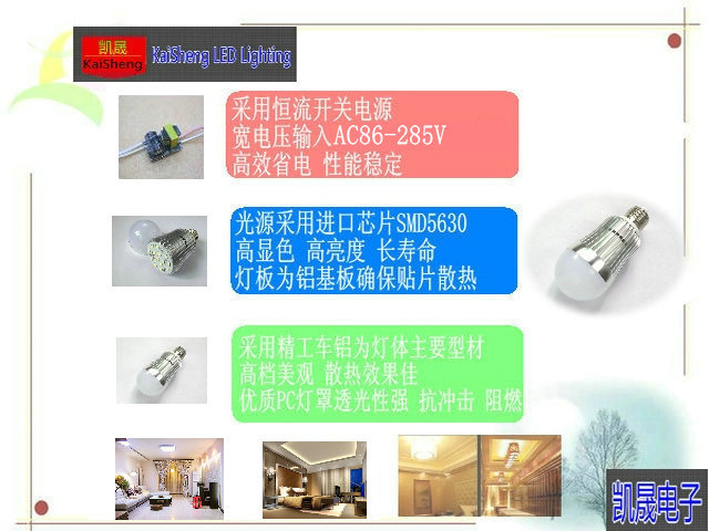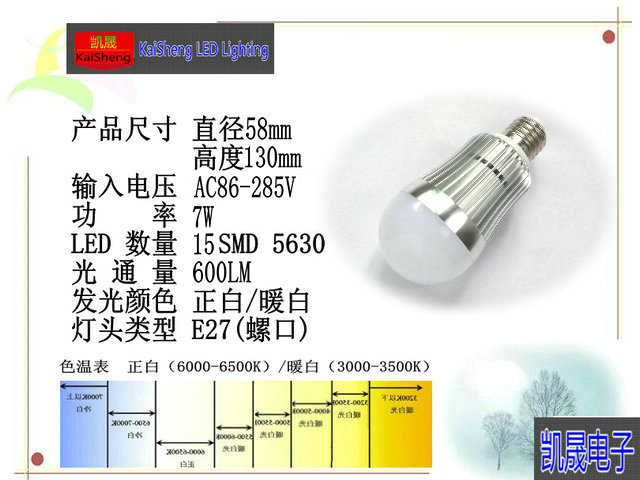 交流110V/220V7W铝合金大功率LED节能灯/56305730恒流源/球泡高亮
