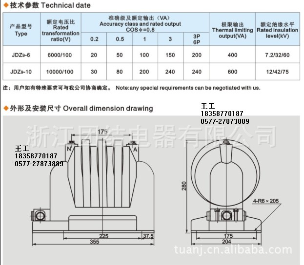 1.1JDZ9-10型互感器为单相二绕组、环氧树脂浇注、全绝缘、全封闭电压互感器,适用于额定频率为50Hz,额定电压为10kV及以下户内装置的电力系统中供电气测量和电气保护用。