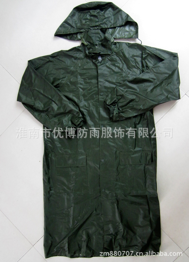 本品为涤丝纺防雨面料,加100%PVC防水涂层,双层防沾身设计,透气透湿,帽子可拆卸,防盗防水口袋,休闲款式,安全实用!