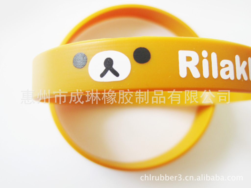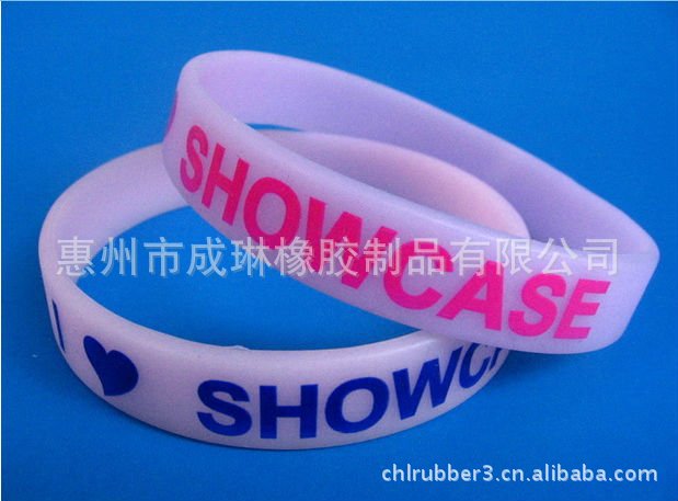 4、印刷硅胶手环:手镯上面的logo是用油墨通过网版印刷在手镯上的;