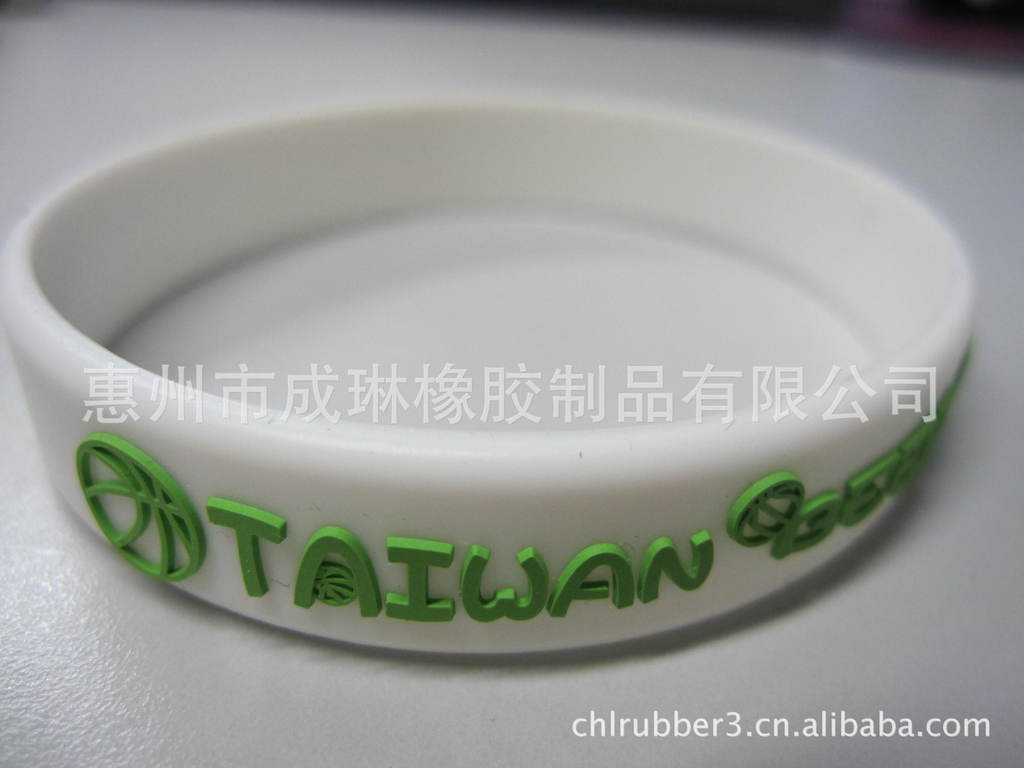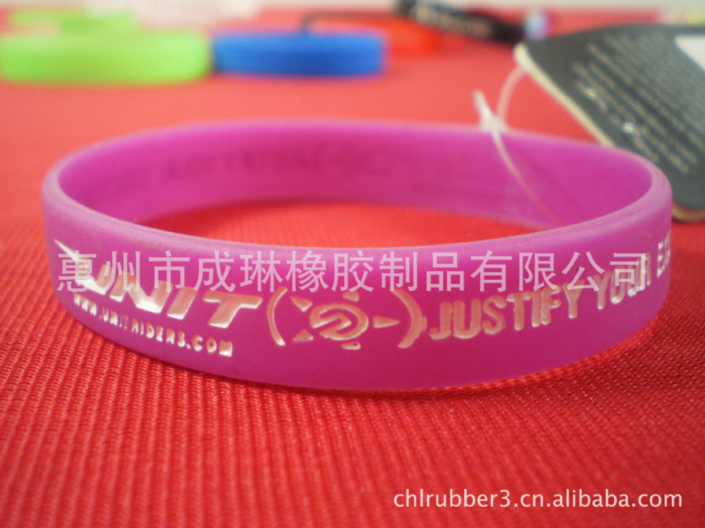 1、凸刻硅胶手环:手镯上的logo文字表现为凸字,LOGO与手环同色,一次成型,这种工艺的硅胶手环,需要开模订做,会增加产品成本,若客户用量不大,不建议采用此工艺;