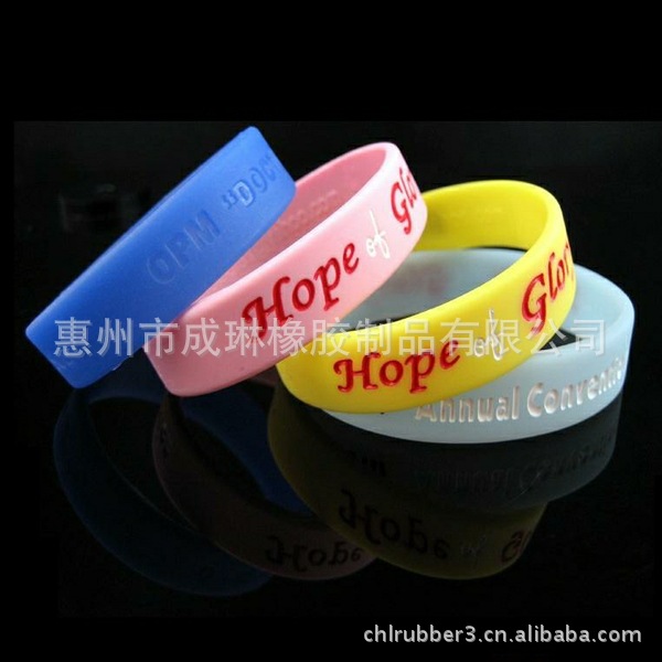 惠州成琳橡胶制品有限公司是一家专业生产硅胶手环厂家,硅胶手环采用100%固体硅胶经油压机压制而成,产品具备耐磨损、耐高温、不变形、无毒无味、对人体无副作用等特点,同时具有柔软、不开裂、使用寿命长和不刺激皮肤等优点,是真正的绿色环保首饰饰品。
