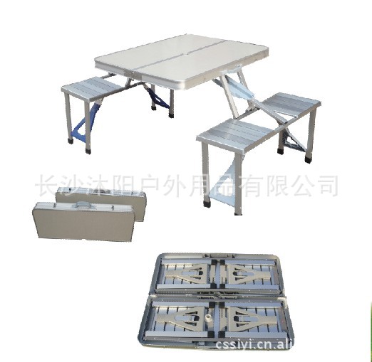 【产品特点】:展开后为一桌四凳,桌面中央可配遮阳伞,折叠后仅如手提箱般大小,方便携带,