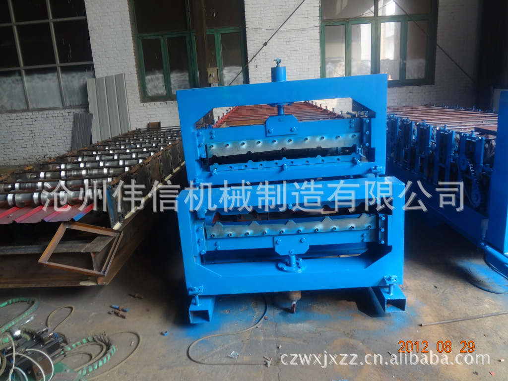 沧州伟信机械制造有限公司产品有隐藏式屋面板成型机、琉璃瓦成型机、二合一双层成型机、脊瓦、附件成型机、大跨度有梁、无梁拱形机、卷闸门成型机、落水管成型机、放料机、剁料机、彩钢夹芯板生产线、C型钢机、Z型钢檩条生产线、彩钢设备楼面钢承板生产线、高速护栏生产线、开卷-校平-剪切-剁料生产线等系列设备。另外,我厂还生产系列液压剪板机、折弯机、系列钢卷纵剪机组等设备。我厂是专业生产各种型号彩钢瓦,屋面板,墙面板成型机,彩钢设备,彩钢瓦设备,彩钢瓦压型机,彩钢瓦机,俄罗斯专用设备,扣板机,复合板流水线,C型钢设备,琉璃瓦设备的专业厂家.经过多年的实践经验和有关专家的精心设计,使我厂发展成集研发,生产,销售,安装,调试并提供压瓦机技术咨询为一体的现代化企业,产品销往全国各地,深受广大用户的好评.我厂拥有较强的专业技术力量和生产能力.专业产品:角驰760型,820型;普通820型,840型,860型,900型,910型,125型压瓦机设备;C,Z型钢机,4米剪板机,折弯机,产品质优价廉其技术性能及指标均达到国内外先进水平,并可根据用户要求进行特殊设计制造,同时对用户进行指导,生产,安装,调试维修彩钢设备一条龙服务.