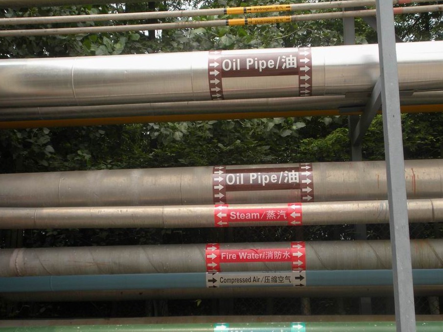管道标识:引进德国、加拿大、美国技术研制生产的工业管道标识产品,具有绿色环保、无色无味、美观、夜视效果对比度强、耐酸碱腐蚀、耐潮湿、耐高低温、不褪色、不掉落、不剥落、安装简便、工程造价低等特点!其核心竞争力在于:具有反光功能、阻燃功能、使用寿命长、价格相比进口同级别产品极具竞争优势!管道标识解决方案遵循中国国家标准或国际标准,特别是反光系列和阻燃系列已经得到了众多外资企业的高度认可。
