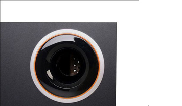 三诺 H-222金猪版III 2.1音箱采用的是黑色主色调,视觉效果端正沉稳,在外观上很易于和其它设备搭配摆放。在黑色底色映衬下,低音箱和卫星音箱前面板上大大的白色装饰环使音箱显得比较有整体感,为音箱带来了一股活泼可爱气氛。 | ![]() |