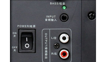 音箱的输入输出接口、电源开关和音量调节旋钮都位于低音箱右侧面上,用户触手可及。音频输入接口采用的是3.5mm插孔,卫星音箱信号输出接口采用的是RCA莲花插头,独立的音量调节旋钮也更便于用户调节音效。 | ![]() |