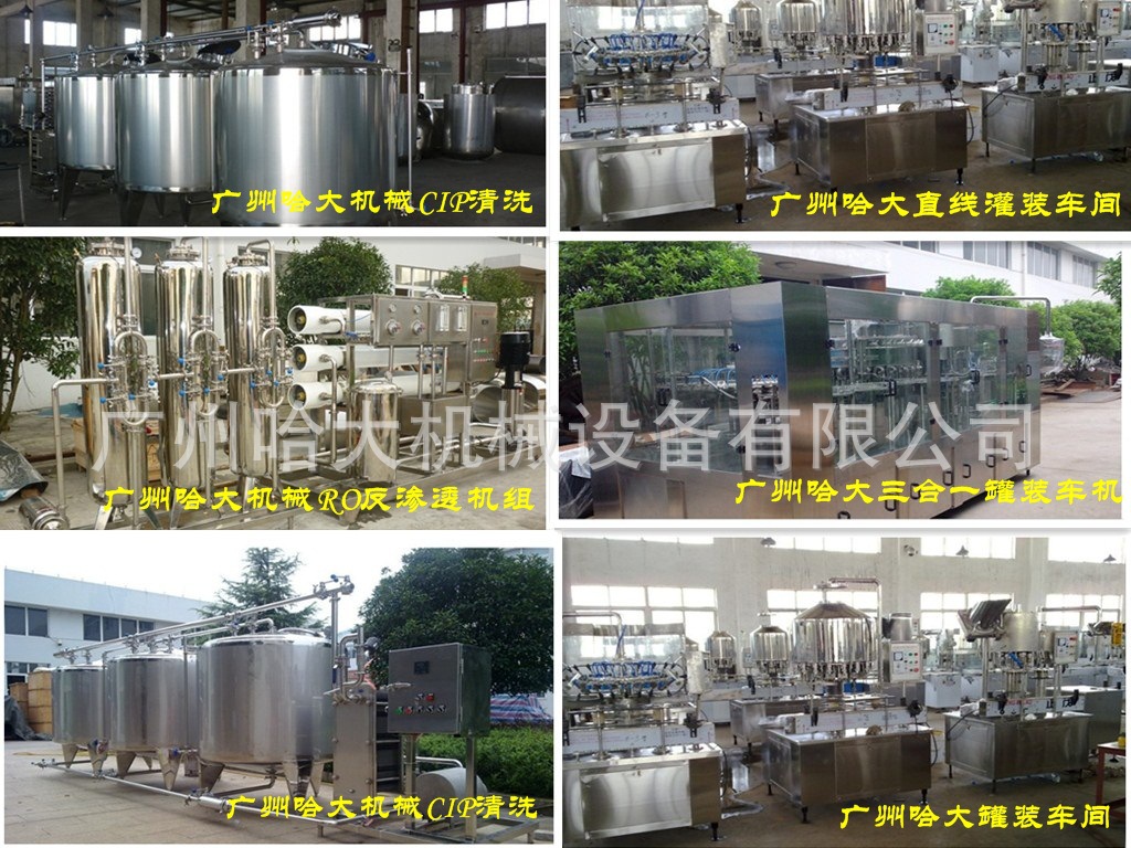 广州哈大机械设备有限公司创建于2000年,至今为止拥有12年的自动机械生产线经验,厂区占地面积23500平方米。专业从事液态食品工业之各种前处理加工设备和后段充填/包装设备,并且擅长于整厂的工程规划、系统制工程设计,设备与管路安装/调试及售后技术报务。哈大公司始终坚持科学管理理念,坚持企业发展以人为本,以市场为导向。多年丰富实践经验至今由哈大公司所承接工程项目之矿泉水生气企业、乳品饮料生产企业、纯净水生产企业、碳酸饮料生产企业及果汁饮料生产企业已逾上百家。 哈大公司主要生产喷码机、饮料灌装生产线、水处理设备、液体灌装机、贴标机及包装机械设备。产品畅销全国三十多个省、市、自治区。并远销东南亚等国家和地区。