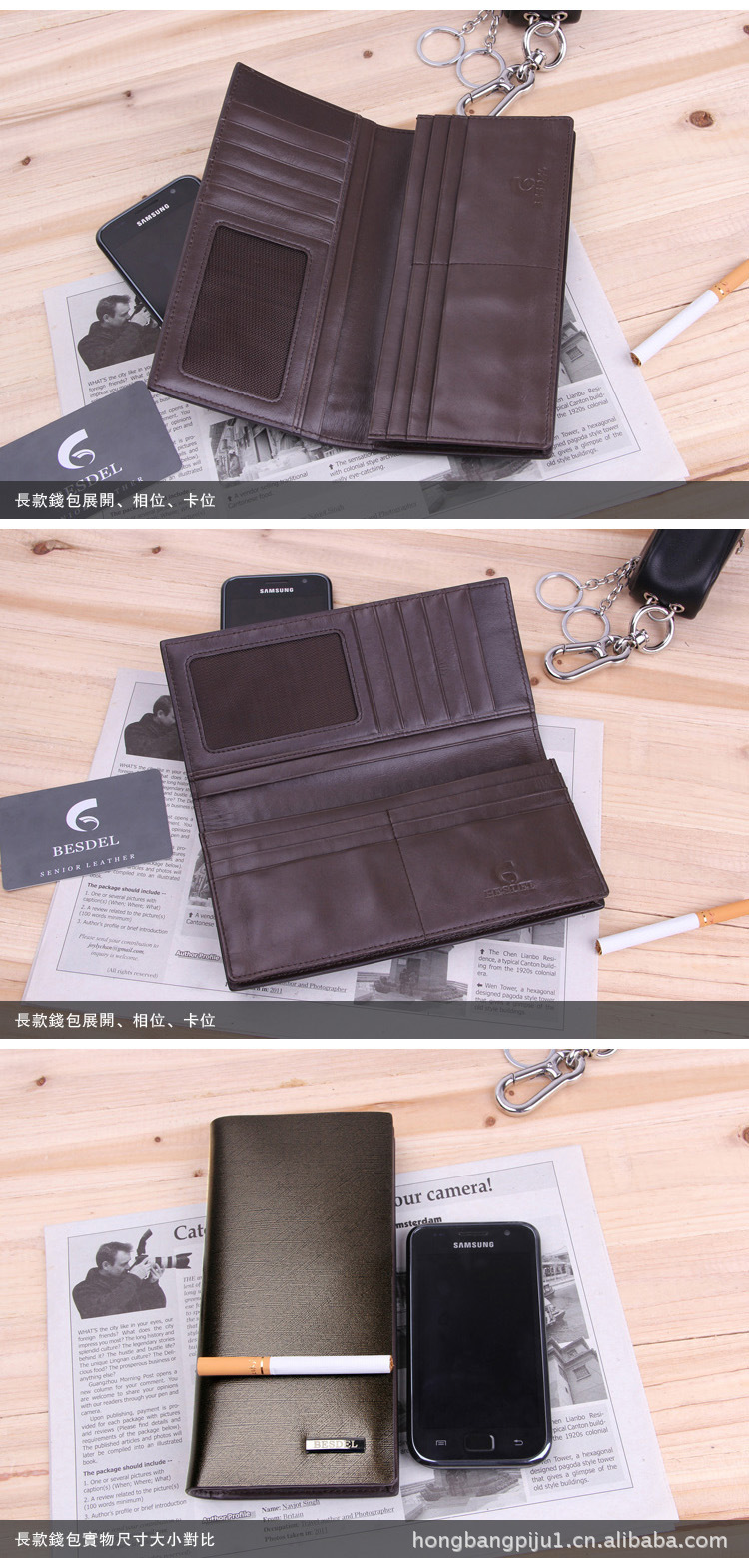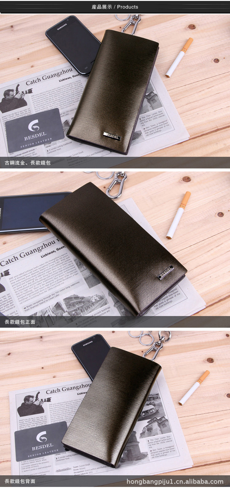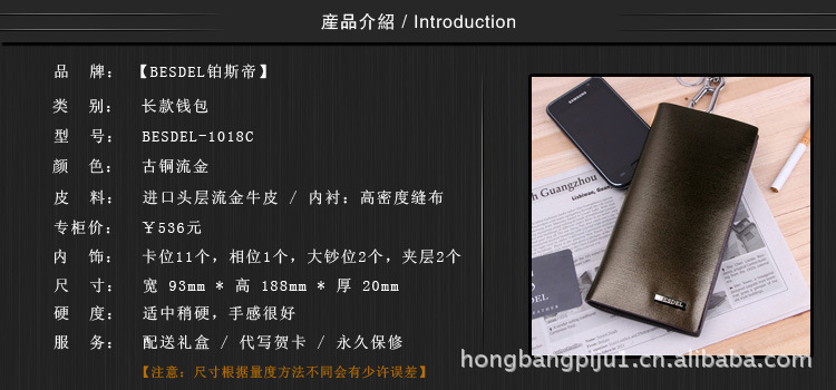 工厂直销进口牛皮/男士钱包/古铜暗金/长款钱夹/2折多卡位钱包