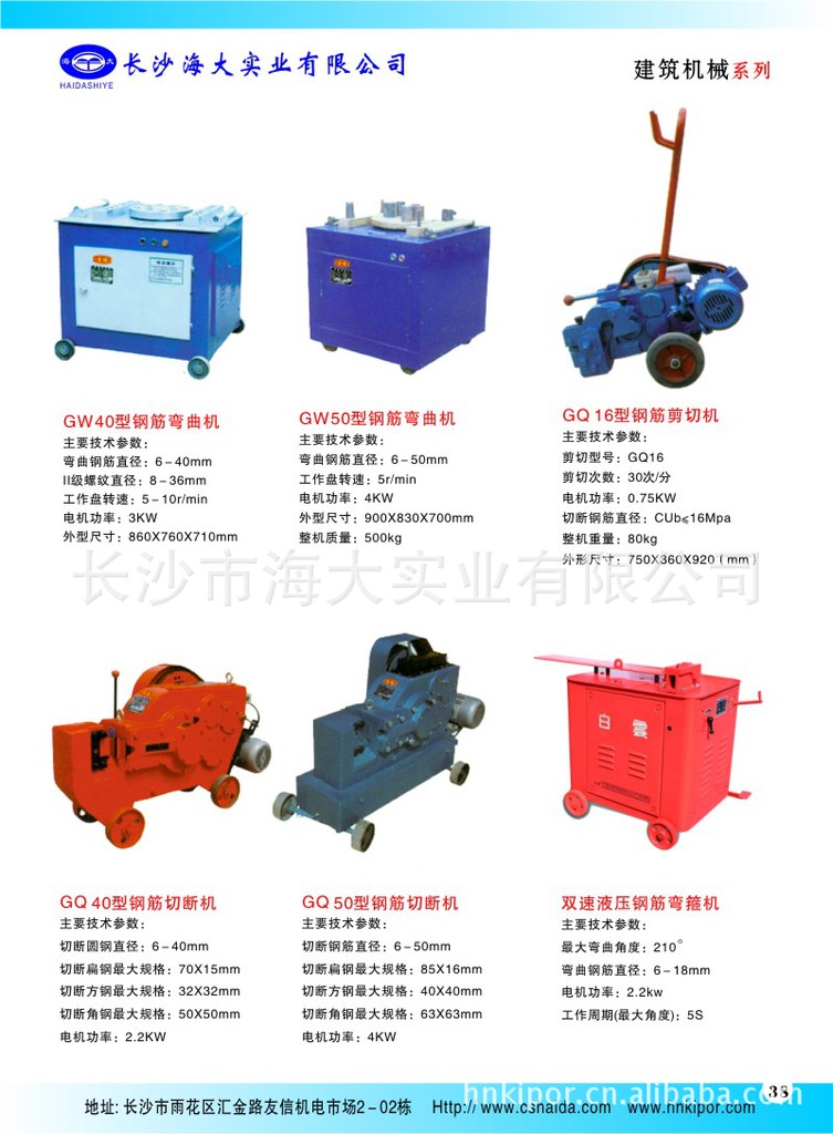 长沙海大实业有限公司专业提供:西湖砂轮机、电动套丝机、钢筋弯曲机、钢筋切断机、西湖型材切割机、开普发电机、钢筋对焊机、上海通用电焊机、双速液压弯箍机、直螺纹滚丝机、金力磁力钻、烈霸空压机、电动冲击夯。
