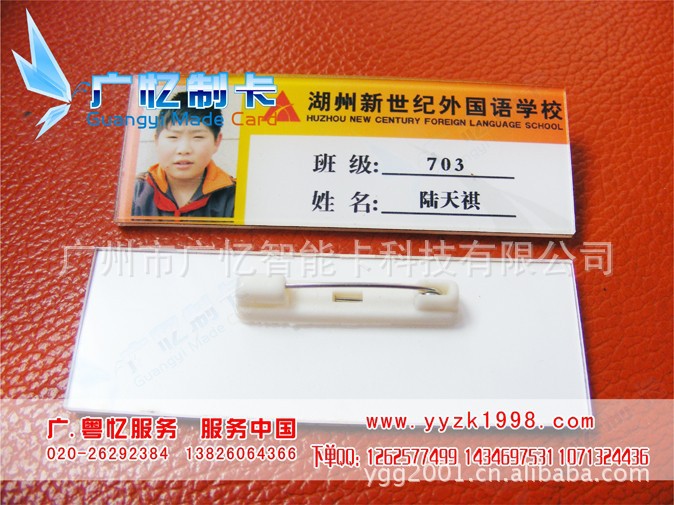 广州出货速度最快胸牌厂家{粤忆是您最佳的战略合作伙伴} 专业设计制作各种高档精美胸卡胸牌,主要生产印制产品有亚克力胸牌制作、有机胸牌制作、水晶胸牌制作、滴胶胸牌制作、滴塑胸牌制作、水晶徽章制作、学校校牌制作、校徽制作、印制学生校卡、金属胸牌制作、金属工号牌制作、铝合金胸牌制作、不锈钢工号牌制作、金属胸卡制作、金属工牌制作、专卖店店员牌制作、笑脸牌制作、微笑牌制作、水晶滴塑胸牌制作、有机丝印胸牌制作、员工工牌制作、工厂厂牌制作、销售员工号牌制作、店员工号牌制作、水晶胸徽制作、金属徽章制作、PVC工牌制作、PVC工卡制作、酒店工号牌制作、工牌制作、异形胸牌制作、不规则形状胸牌制作、特殊形状工牌制作、挖槽胸牌制作、可更换式胸牌制作、开槽胸牌制作、插纸胸牌订制、服务员胸牌制作、房地产公司高档胸牌制作、免滴塑胸牌制作、金属滴胶胸牌制作、俱乐部胸牌制作、KTV员工胸牌制作、娱乐城工号牌制作、美容院存包牌制作、寄存牌制作、钥匙牌制作、酒吧吧员牌制作等。款式精美,品种齐全,精美高档,质优价惠,欢迎来电咨询! 员工胸号牌设计制作是一种别于胸前,用来展示企业形象和体现企业文化和表示员工身份的专用标识牌。我们工厂拥有高精度的胸牌胸卡制造设备、高技术高素质的操机师傅,我们用细心、信心和专心将制作出来的高质量胸牌成为您企业形象和文化展示中不可缺少的一部分,将您的企业形象和文化展示得更加好。 {材质}亚克力、金属、PVC、水晶、滴胶、有机玻璃、 尺寸}常用尺寸20*60mm 22*65mm 20*70mm 25*70mm 可以根据客户所设计好的尺寸形状来订做。任意形状、任意尺寸、任意颜色均可订做,质量防水、防晒。 金牌品质 粤忆打造,专业、专注、专心 下单QQ:1262577499 24小时客户服务热线:13826064366 全国最快胸牌生产商、广州粤忆胸牌厂家、做最专业的胸牌厂