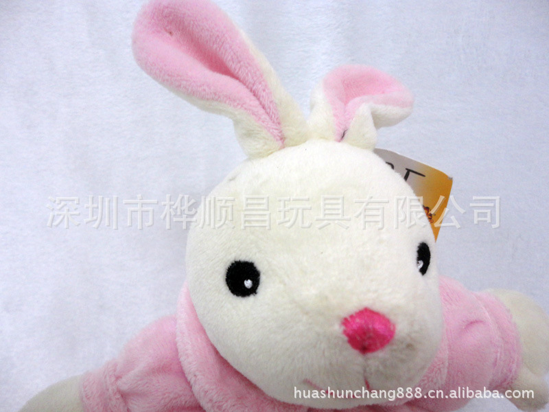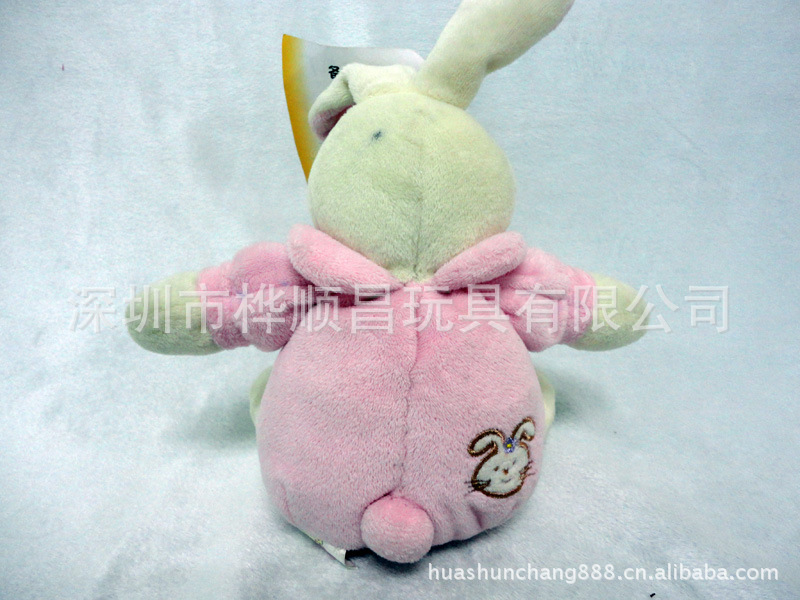 冖描述:高档超柔面料,不掉绒,不掉色,摸起来手感超好,柔软又有弹性的身体,抱起来舒服极了.小兔子内置小玲铛,摇动兔子会发出清脆的声音,吸引宝宝的眼球,提高注意力,值到拥有的小兔子哟。