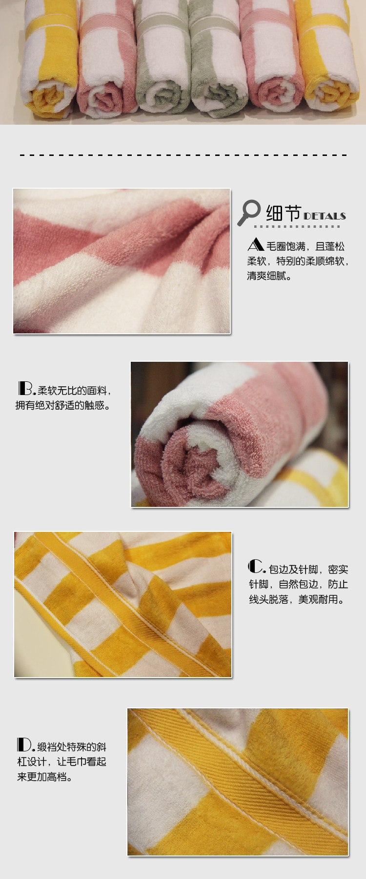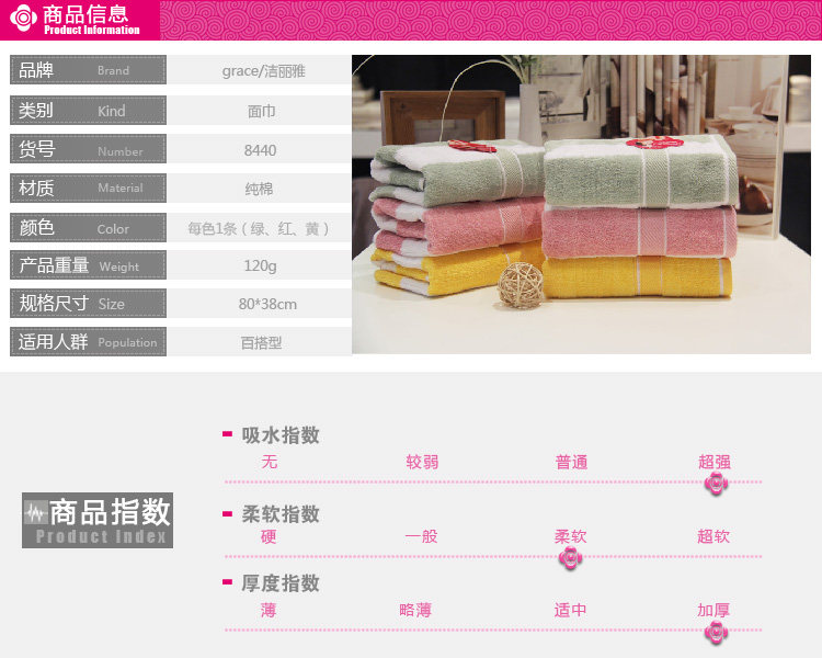 洁丽雅纯棉厚实款毛巾8440 120g超厚实款条纹三色毛巾,断档包边工艺,厂家直销正品保证!!!