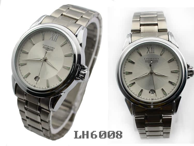 表带:优质高密度不锈钢表带,耐腐蚀不掉色不生锈不过敏(可用真皮/合金/PU皮/PVC/塑胶/铜/钨钢/陶瓷/钛/玉/木等,具体按客户要求生产),可压制LOGO