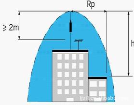 Rp = h (2D - h) + ΔL (2D + ΔL) (适用于h ≥ 5m )(当 h < 5m参见保护半径表)
