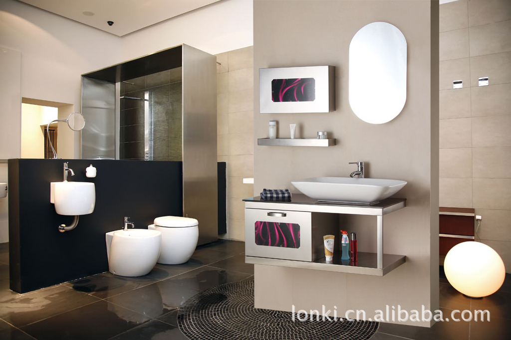 我司是一家专业生产和制造“朗琦”和“浪鹰”牌高档卫浴家居产品的厂家,主打产品有:无指纹丝不锈钢浴室柜,不锈钢镜柜,不锈钢储物柜,不锈钢药箱,浴室镜,浴室配件等。不锈钢柜子防锈,防水,防潮,且可循环再用,是现代低炭生活的首选!