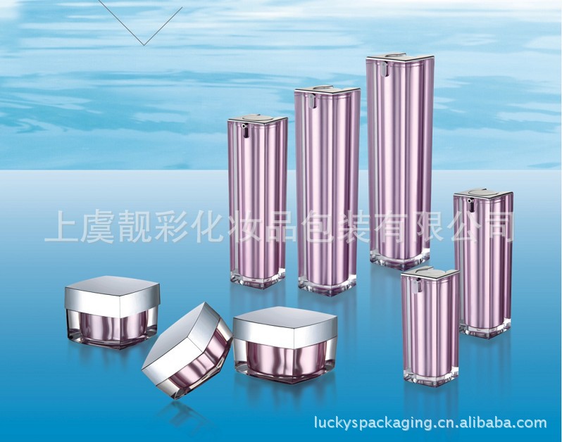 主要原材料:亚克力瓶身和盖子,PP内胆,ABS肩套,电化铝乳液泵或喷雾泵(乳液瓶)