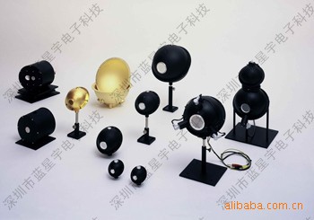 Integrating spheres are used for measurements of the reflectance or transmittance from samples, which are scattering, because they collect the entire radiation going into the hemisphere. The detectors are placed in the sphere-wall and see a radiation density, which are uniform at each part of the sphere wall and directly proportional to the hemispherical reflectance or transmittance of the sample. The spheres are useful for the specular measurement of plane samples, too, because difficult adjustment of the detectors could be avoided. This fact is important for in-line measurements, especially. 用于测量积分球的反射或透射散射从样品,因为他们收集整个辐射进入大脑半球。探测器固定放置在sphere-wall,看见一个辐射密度,在每一部分是均匀的球体的墙壁和直接成正比的,并在此基础上提出样品的反射或透射。这些球是有用的高光测量飞机的样品,也因为困难的调整检测器的可以避免的。这很重要,特别是在线测量。 Different wall materials are available:不同的墙体材料可供选择: Barium-sulphate or PTFE for the solar range (0.3µm to 2.5µm) Barium-sulphate或聚四氟乙烯为太阳能范围(0.3µm到2.5µm) Diffuse-gold for the infrared range (1µm – 25µmDiffuse-gold为红外范围(1µm - 25µm