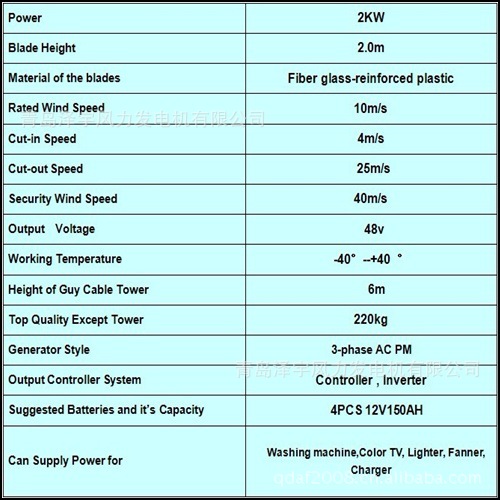 叶片外型采用专利技术曲线设计,具有良好的气动性能,材料采用优质玻璃钢,具有起动早抗大风能力强,效率高等特点,逆变器采用芯片控制,脉宽调制,稳压输出,有全自动保护功能,能够在各种恶劣气候环境下安全运行.风力发电机整机配置优良,性能可靠坚固耐用,美观大方,可以泛应用于农村、牧区、山地、海岛和边防哨卡,及其他电力供应不正常地区或无电地区的照明、家用电器和电动工具的用电。并提供小型风电场解决方案。