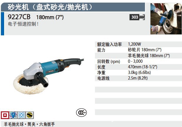 | 能力 | 砂轮片:180mm(7") 羊毛抛光球:180mm(7") |