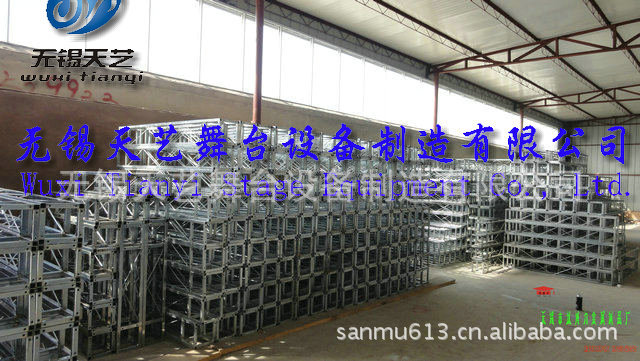 无锡天艺舞台设备制造有限公司是一家经过工商认证的有限责任公司,专业生产舞台,桁架,铝合金桁架,铝合金舞台,快装专利舞台,脚手架,灯光架,雷亚架,折叠舞台,玻璃舞台,合唱台等各种展览器材的制造研发和销售。公司位于国家级经济开发区 ,芙蓉工业园区A区蓉洋三路 32-1号,无锡东出口处8公里即可到公司,东临上海、西靠南京、北枕长江;周边与江阴、张家港、常熟等国家卫生城市紧邻,交通便捷、人杰地灵。 公司目前的● “三个最” -----最响品牌无锡天艺公司在中国网络媒体投放的广告费用10万余元,覆盖全国各个地方,产品规格齐全,量大销售,价格优惠,产品推广等灯的营销网略使天艺的市场占有率高达32%,现有逾千家客户,规模庞大的营销队伍,产品销售遍布全中国。目前江苏最大规模的拥有世界上最先进的设备流水线式的生产模式,是目前江浙沪最大规模的生产厂家之一,生产能力桁架日均产量超过250米,舞台日产量达250平方,浪莎拥有占地5000平米的厂房,集设计、开发、生产、销售于一体,是目前世界上规模最大的舞台桁架生产企业,现货单位。最强实力天艺公司凭借最现代化的管理优势,实现了生产成本的最低化,创造了传媒广电行业效益最好局面,一直雄居行业实力榜首,独占鳌头。最多品种天艺产品覆盖百余种大类上千个品种,是行业品种最多,规格最齐全的企业。森科雄厚的开发实力,每年都能有2-5款新品种,获得国家专利,极大满足了客户的需求。