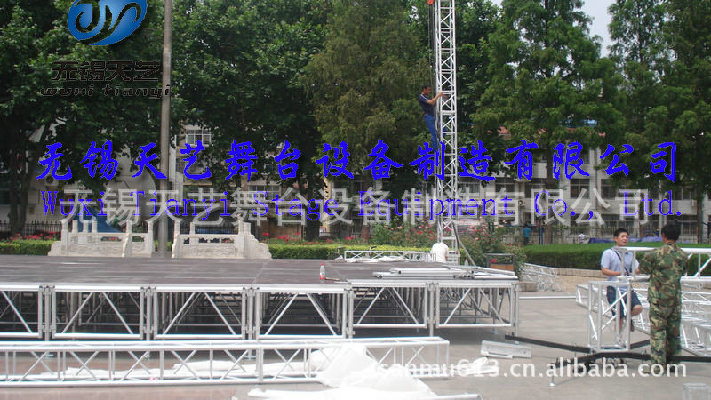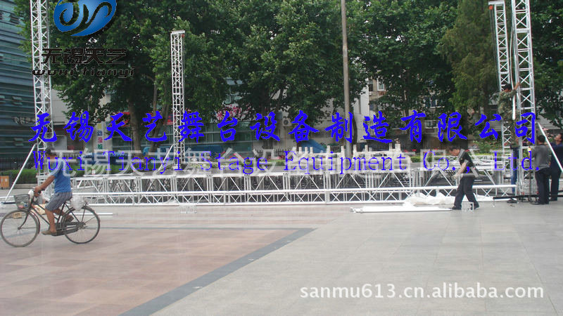 无锡天艺舞台设备制造有限公司是一家以专业生产展览钢制桁架,快装活动舞台,铝合金桁架,铝合金灯光架,雷亚架,A字架,铝合金舞台,玻璃舞台,折叠舞台,展览篷房,T台等系列产品为一体的综合性的大型生产企业。公司拥有成熟的销售团队,竭诚为您提供最优质的服务,拥有最强大的技术和设备支持,全力为您打造质量最精的产品,公司秉承“质量为首,服务为先,诚信为本”的经营理念,立志在行业内创出辉煌!争创行业第一!欢迎来厂参观洽谈。我们竭诚为您提供最优良的品质和最好的服务。 感谢您对我们公司产品的关注和咨询,下面是我们公司常规产品的相关资料,请您详阅,真诚希望有机会合作! 谢谢!