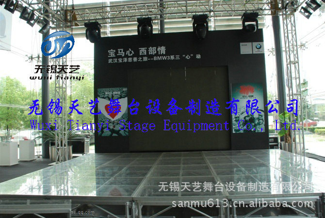 名称:玻璃舞台 质保期:1年 材质:铝合金+钢化玻璃