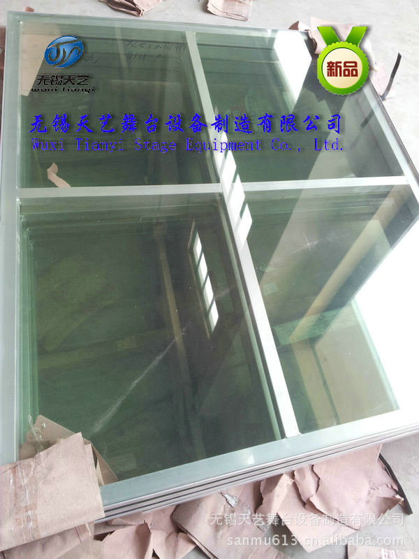 本公司舞台常规规格为1.22米*1.22米,或1米*1米,台面铺设钢化玻璃,玻璃厚度8+8夹胶(3层)钢化玻璃,高度0.6米 ,0.8米。高度一般为固定,也可以根据要求定做调节高度。