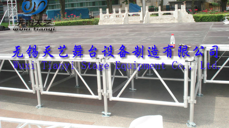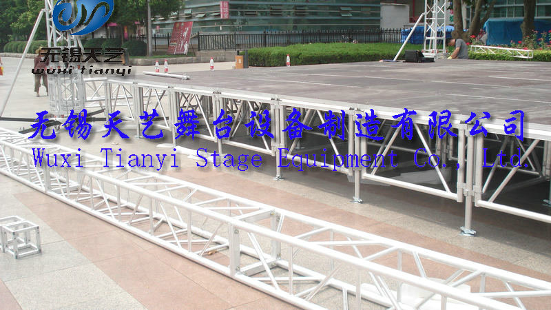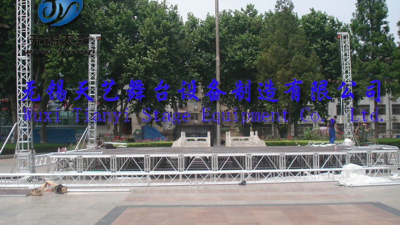 无锡天艺舞台设备制造有限公司是一家经过工商认证的有限责任公司,专业生产舞台,桁架,铝合金桁架,铝合金舞台,快装专利舞台,脚手架,灯光架,雷亚架,折叠舞台,玻璃舞台,合唱台等各种展览器材的制造研发和销售。公司位于国家级经济开发区 ,芙蓉工业园区A区蓉洋三路 32-1号,无锡东出口处8公里即可到公司,东临上海、西靠南京、北枕长江;周边与江阴、张家港、常熟等国家卫生城市紧邻,交通便捷、人杰地灵。 公司目前的● “三个最” -----最响品牌无锡天艺公司在中国网络媒体投放的广告费用10万余元,覆盖全国各个地方,产品规格齐全,量大销售,价格优惠,产品推广等灯的营销网略使天艺的市场占有率高达32%,现有逾千家客户,规模庞大的营销队伍,产品销售遍布全中国。目前江苏最大规模的拥有世界上最先进的设备流水线式的生产模式,是目前江浙沪最大规模的生产厂家之一,生产能力桁架日均产量超过250米,舞台日产量达250平方,浪莎拥有占地5000平米的厂房,集设计、开发、生产、销售于一体,是目前世界上规模最大的舞台桁架生产企业,现货单位。最强实力天艺公司凭借最现代化的管理优势,实现了生产成本的最低化,创造了传媒广电行业效益最好局面,一直雄居行业实力榜首,独占鳌头。最多品种天艺产品覆盖百余种大类上千个品种,是行业品种最多,规格最齐全的企业。森科雄厚的开发实力,每年都能有2-5款新品种,获得国家专利,极大满足了客户的需求。