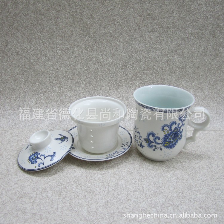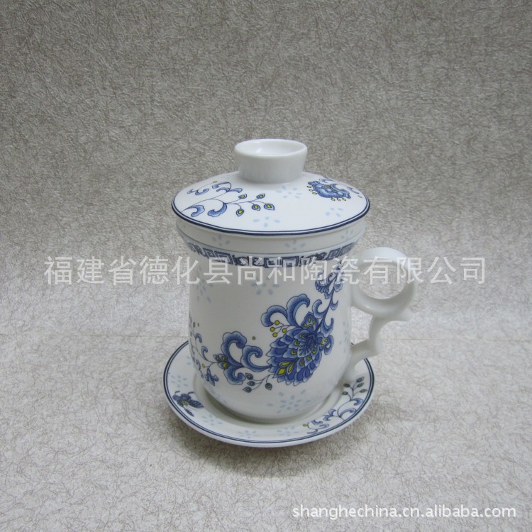 尚和道厂家直销经典青花系列蝶恋花陶瓷四件杯SH-87026