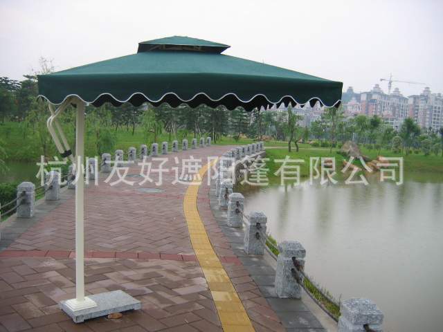 适合场合:适于在别墅、花园、庭院、游泳池、广场、茶园、岗亭、等户外场所作遮阳、档雨之用。和高档楼盘、漂亮花园相得益彰。同时,本伞也可用于宴会厅、茶楼、咖啡馆、酒吧等高档室内场所作装饰之用。