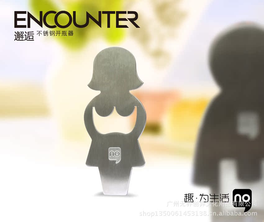 当MM遇上GG的时候……你们邂逅了!你的美丽献给了谁?你的潇洒又展现了给谁看?缤纷世界需要你来点缀色彩,一起来开启欢乐激情的人生!本设计完美将男女特征与实用性相结合,缺口部位可以开启瓶盖。造型个性,与众不同!拥有它,你就是全场亮点!以男女特征为创意设计的开瓶器,轻松调谐,诙谐有趣。缺口部位可以开启瓶盖,不锈钢材质坚固耐用,小巧轻便的造型方便携带,拿到哪里都是全场亮点。
