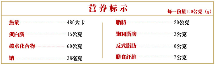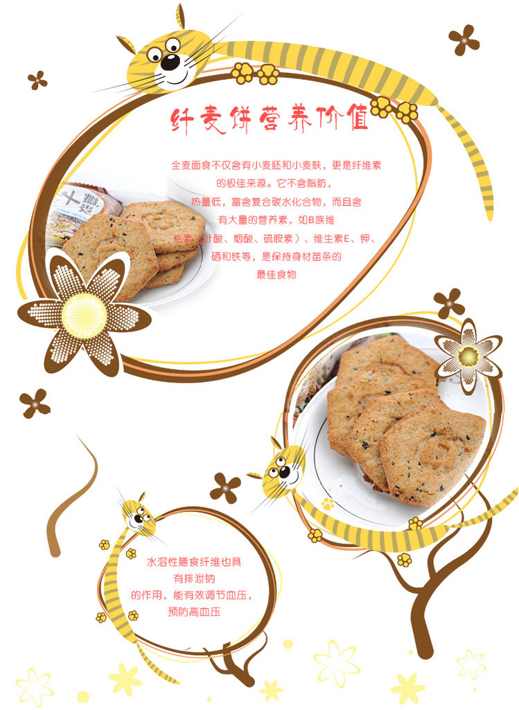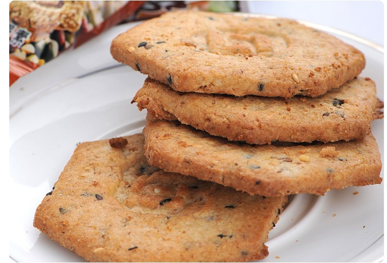 由小麦粉、食用棕榈油、糖、鸡蛋、盐、白芝麻、黑芝麻、燕麦片、黑豆、膨松剂、花生、麦片、糙米、小米、荞麦、芡实、 红薏 仁十几种粗粮经过精心加工而成。含有极高的纤维,可以减缓糖类种能量的示范速度,可以帮助控制食欲,有助于保持 适当的体重,所以吃多也不怕长胖哦!
