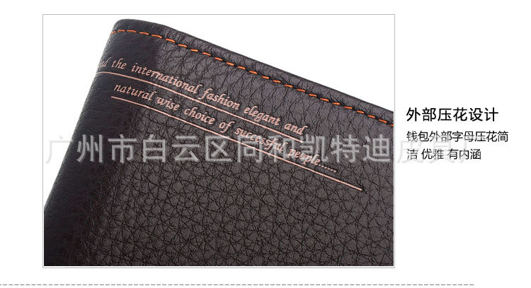 本厂生产的男士钱包采用优质材料制作,款式多样,价格实惠。材料也可以由客人选择,有牛皮,羊皮,马皮,猪皮,再生皮,以及各种进口皮,PU,PVC和帆布。欢迎海内外商家来样来图报价、洽谈、加工合作。我们将以优质的产品和极具竞争性的价格,热情为阁下服务。