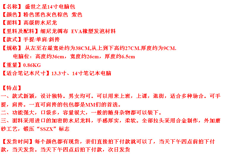 盛世之星新品韩版 男/女商务电脑包 手提电脑包 时尚电脑包2019