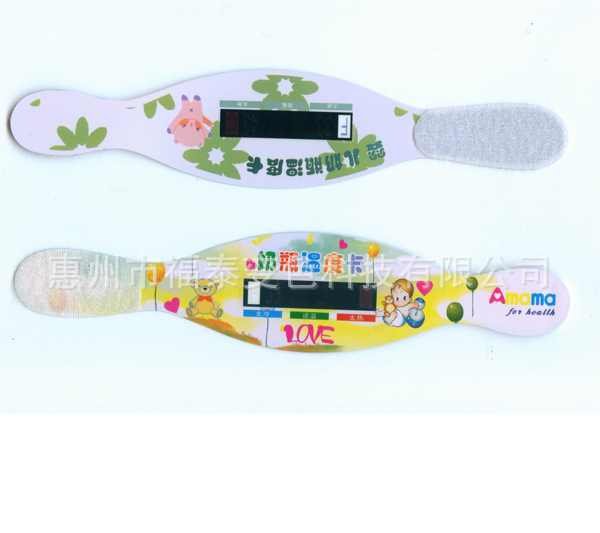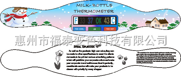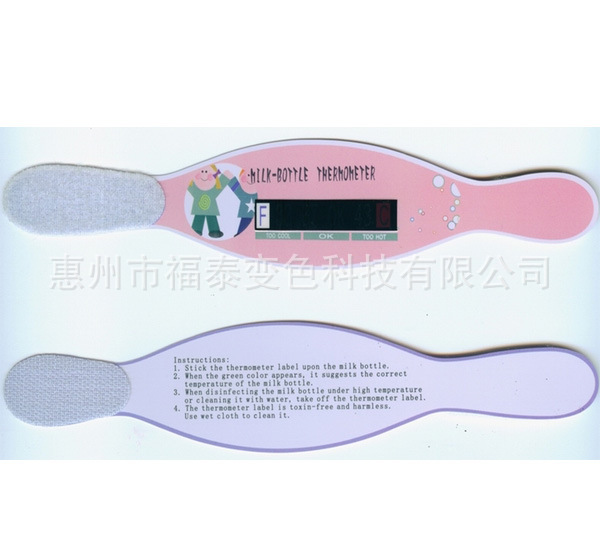 专门为婴儿设计的形状,将温度计贴于奶瓶上就会显示奶瓶里牛奶的温度。