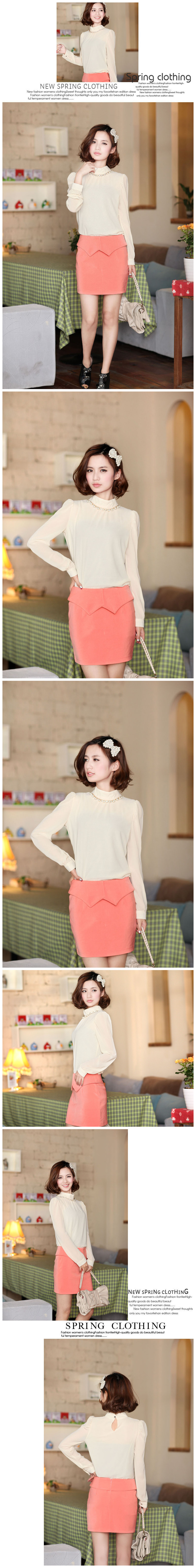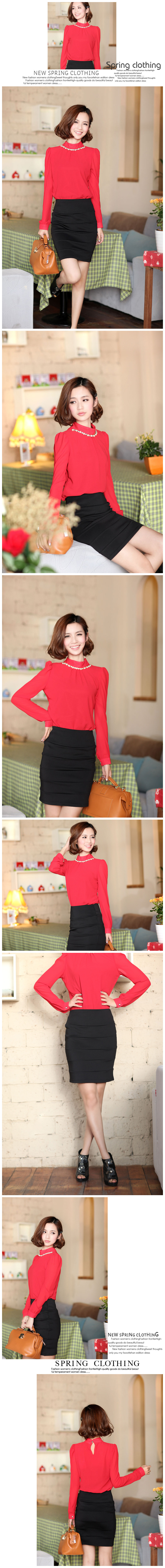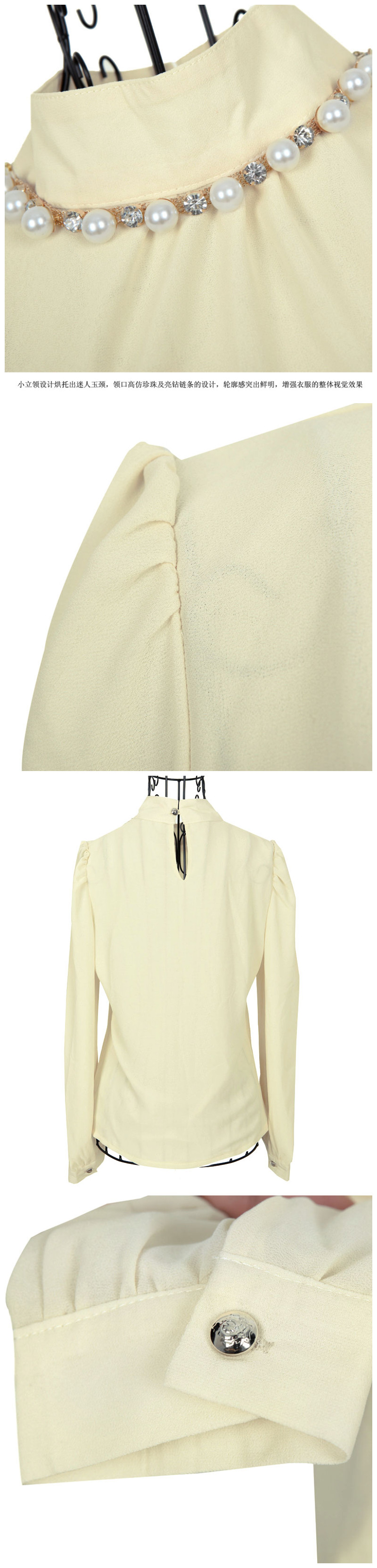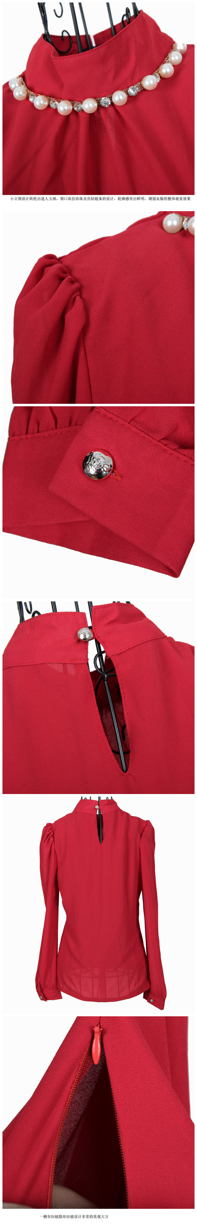 宝贝详情 | 面料手感舒适爽滑,面料略有弹性,面料清爽透气 甜美感十足的衬衫,很有复古感 收腰塑形设计,简单大方,柔软的雪纺面料,让人感觉更加舒适,是一款秋天女生亮丽的气质单品,领口的珍珠项链设计,让人在华贵之余更显妩媚,车缝精致,视觉效果上增添了衣服的层次感和立体感,整体设计独特新颖,个性十足,韩味很浓郁又不失大方,表达女性柔美的同时展现了女性的青春气质。 纯色衬衫带来别样的风情,轻熟女和OL们也可以尝试哦。 可爱的MM可以选择搭配裤,将衬衣束起来,甜美十足;想要适度成熟的话,搭配一条复古喇叭牛仔裤或者时装裤,OL们也可以尝试哦! |