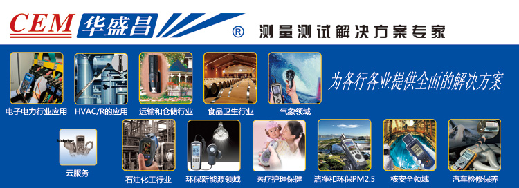 CEM,深圳华盛昌机械实业有限公司,创立于1991年,是集专业开发、设计、生产和销售各类测量仪表于一体的高新技术企业,拥有数百项国家实用新型专利和外观专利,是中国仪器仪表行业协会副会长单位,深圳仪器仪表自动化行业优强企业,深圳高新技术企业,国家高新技术企业。产品面向于国防,电力,暖通制冷,化工,冶炼,电子制造,科研院所等专业领域。产品远销欧美等100多个国家和地区。