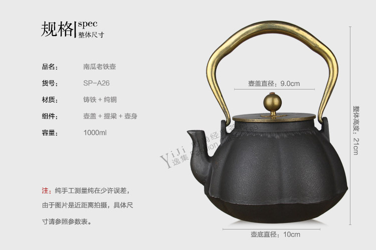 品名 | 南瓜老铁壶 | 货号 | --- | | 产地 | 广州 | 材质 | 铸铁 | 工艺 | 铸铁 | 耐热 | --- | 规格 | 参见详图 | 颜色 | 如图 | 组件 | --- | 制作工艺 | 铸铁 | 备注 | 该产品已将优惠加入、谢绝议价! |