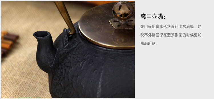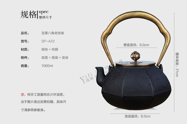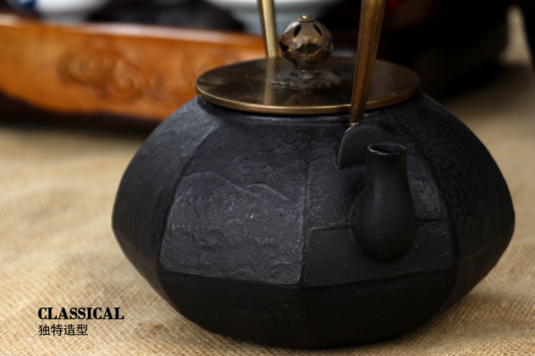 厂价供应 揽景八角铁壶 无涂层仿古南部铁壶 1L 全店混批