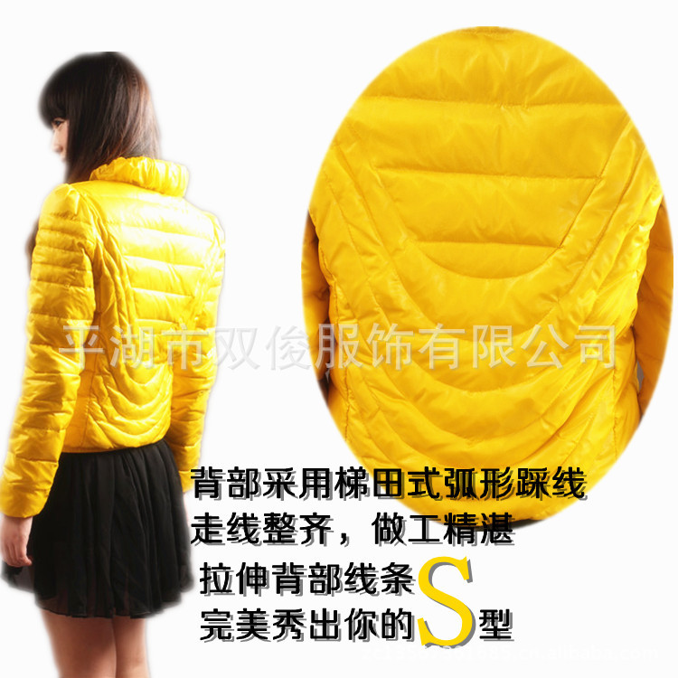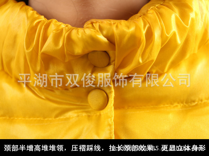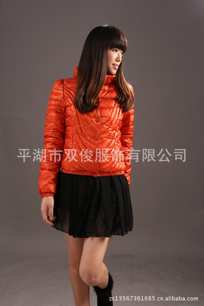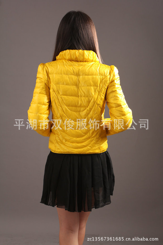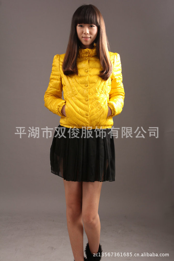 平湖厂家批发直销2013 新款女式加长款毛领带帽亮面羽绒服清仓