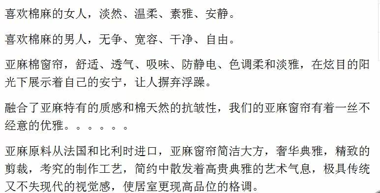 亚麻棉窗帘,成份:55%亚麻45%棉。