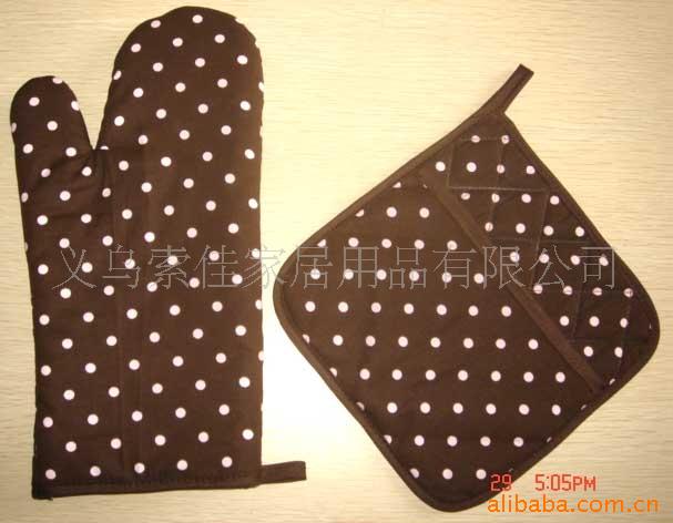 我司是一家专业开发、生产和销售厨房纺织用品的生产型企业,工厂座落在全球的国际小商品城—中国浙江义乌。我们以做工精细、实用创新、物美价廉为经营主导思想。专业的销售团队和优秀的销售服务,为您我共创美好未来。我们真诚地希望能得到您的关照和指点,不论您来自哪里…目前我们产品主要销往韩国、日本等东南亚及欧美、中东十几个国家和地区。产品系列包括:烤箱手套系列:全棉手套、BBQ手套、T/C手套、涂银手套、阻燃手套、印花手套、广告礼品(赠品)手套、厨房三件套等。隔 热 垫 系列:方形隔热垫、圆形隔热垫、煲垫、杯垫、印花垫、广告礼品垫、锅耳套、锅柄套、刀套等。围 裙 系 列:全棉斜纹围裙、帆布围裙、T/C围裙、防水围裙、印花围裙、PVC围裙、牛津布围裙、广告围裙、儿童围裙、袖套等。餐 桌 系 列:餐垫、餐巾、桌布、面包篮、广告礼品等纺织品。