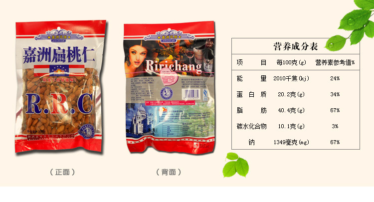 品质生活的享受,精制生活的追求。现代生活的压力,需要些许的惬意,慢慢享受,慢慢品尝,我就是日日昌·扁桃仁。 口感美味,休闲必备,颗颗饱满,粒粒香脆,营养健康,口口留香。日日昌的好品质,源自用心!