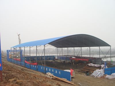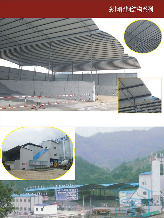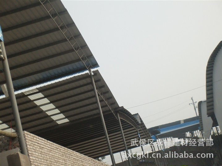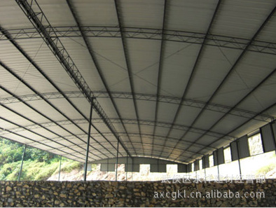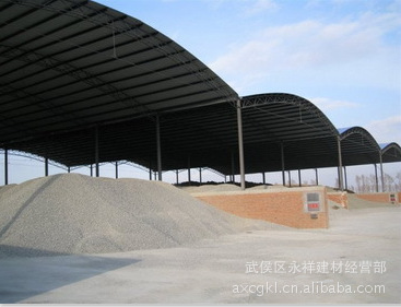 成都永祥钢结构大棚,彩钢工地料棚。构造主要分以下几部分:1.预埋件(能稳定大棚结构)2.立柱.一般用直径100mm-300mm的钢柱或H钢。3.梁.一般采用方钢焊架或C型钢H钢(中间积的高度根据梁的跨度来定);4.横梁一般采用C型钢.架子上面盖彩钢瓦。彩钢瓦分单层瓦和夹心瓦(两层瓦中间搁着泡沫起到冬暖夏凉的作用,也有隔音的效果)。彩钢瓦以彩色镀锌钢板经数控设备辊压成型的新型建筑材料,轿车漆工艺镀锌烤漆处理的彩板。烤漆附着力极强,二十年无需维护。具有建造时间短,造价低廉,实用,等特点。昨日秦汉砖瓦,今日永祥彩钢!