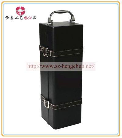 【专业品质】厂家订做各种单只装红酒盒皮盒黑色手提红酒包装盒