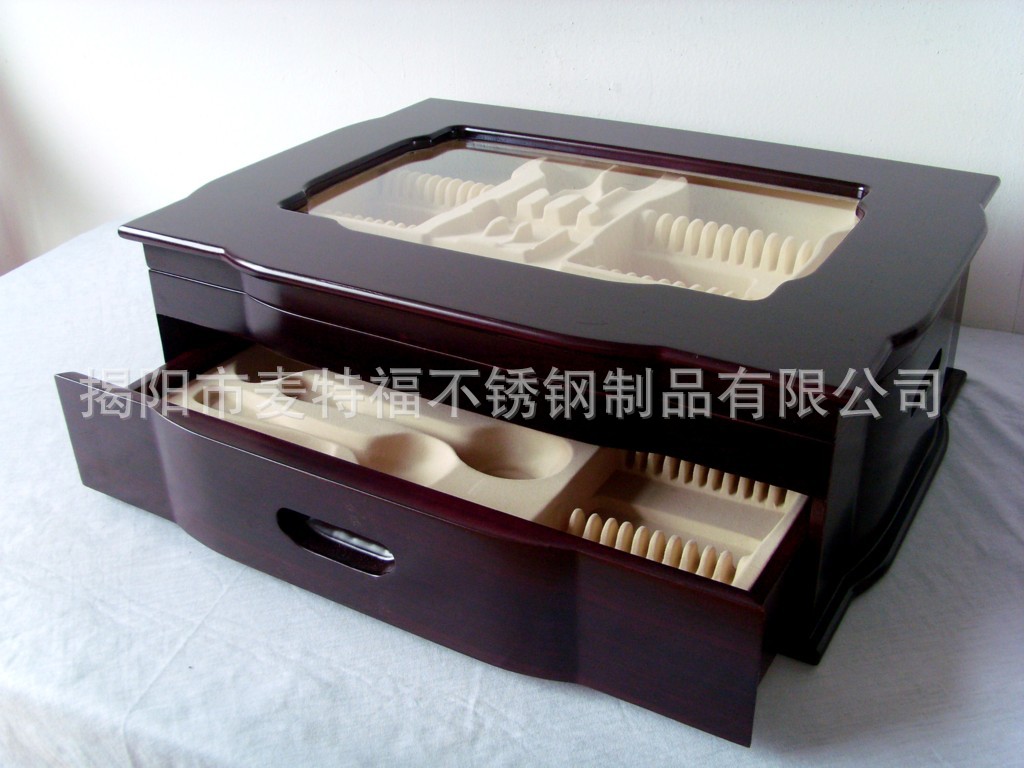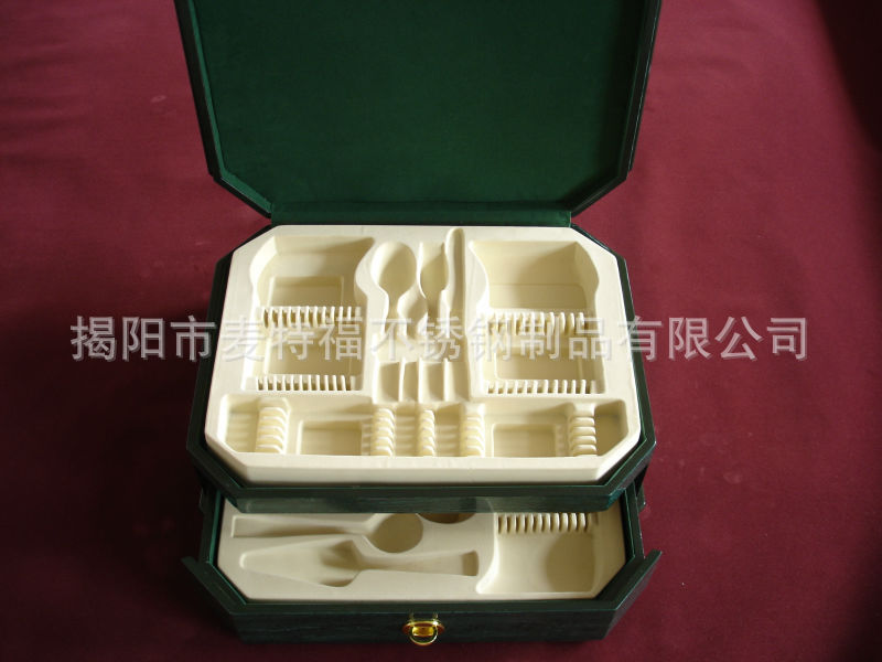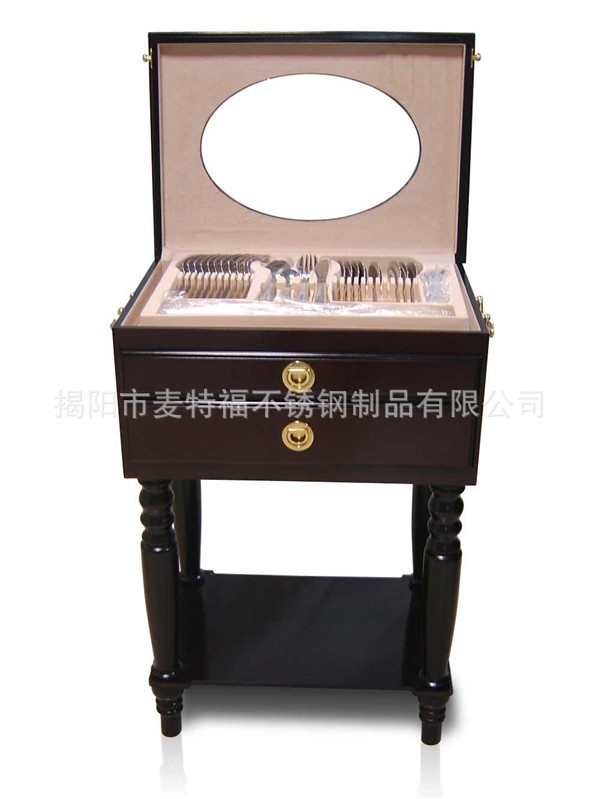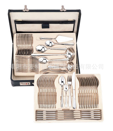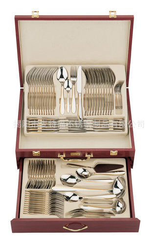 本产品高档不锈钢餐具84件套,工艺木箱包装为一体!