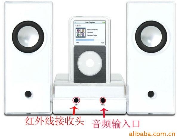 iPod基座可以对iPod/iPhone进行充电,不用担心播放时播放器没电。