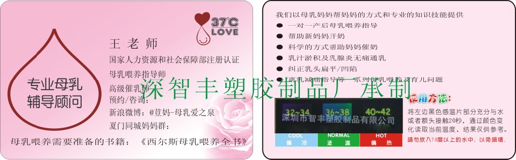 体温卡 是一种特制的卡。外观精美、高档 、造型新颖,可以随身和银行卡放在一起,易于携带和收藏,具体尺寸、印刷内容完全可以根据客户喜好做成各种款式和规格的产品: