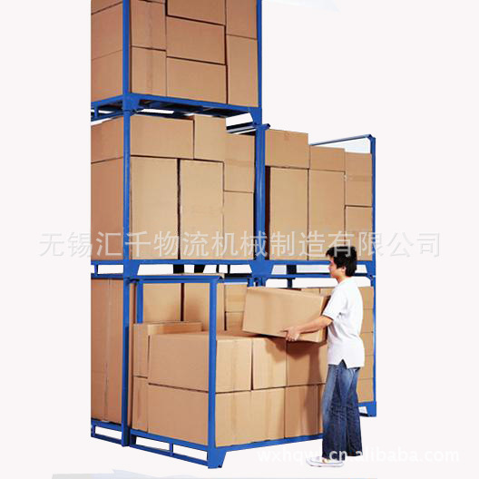 使用堆高机、升降机、吊车,可堆积四层高,产生产体化储存效果,不用时,可以折叠堆积,只及原来使用空间的20%。